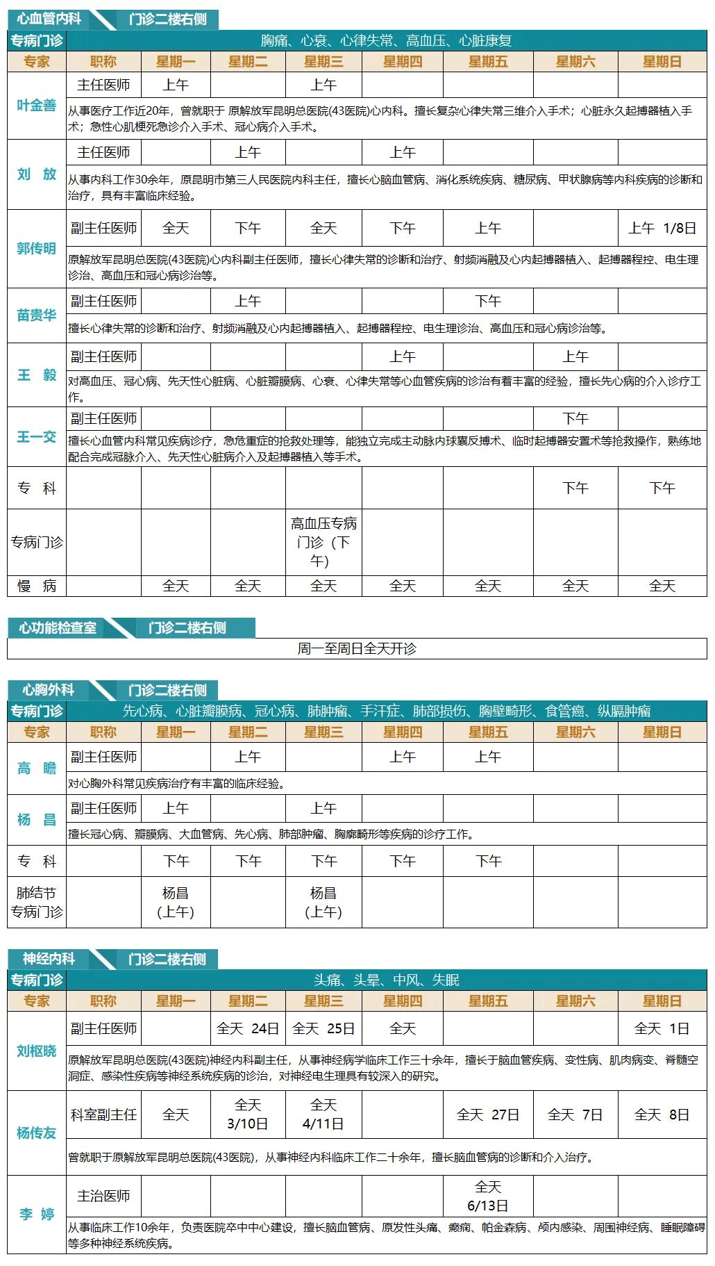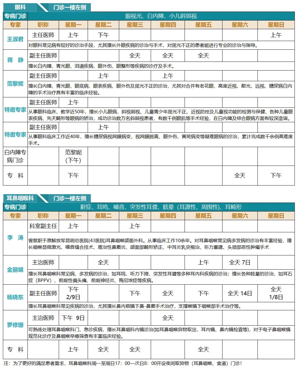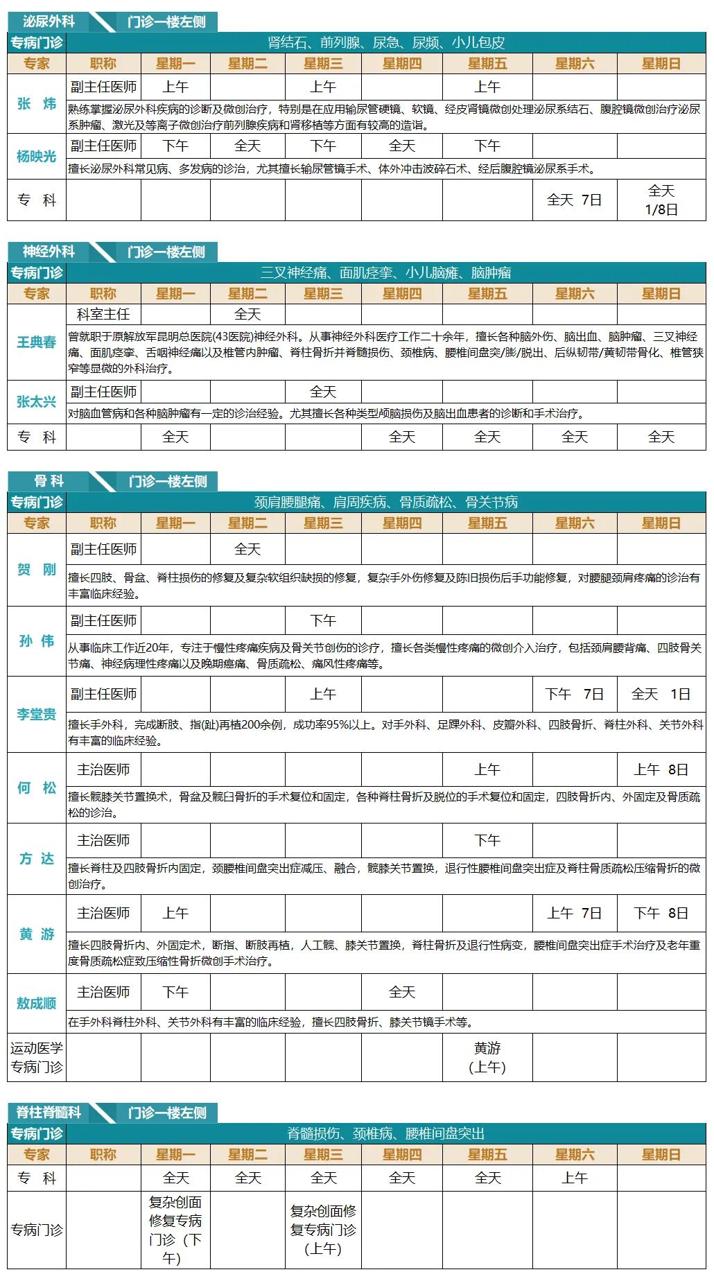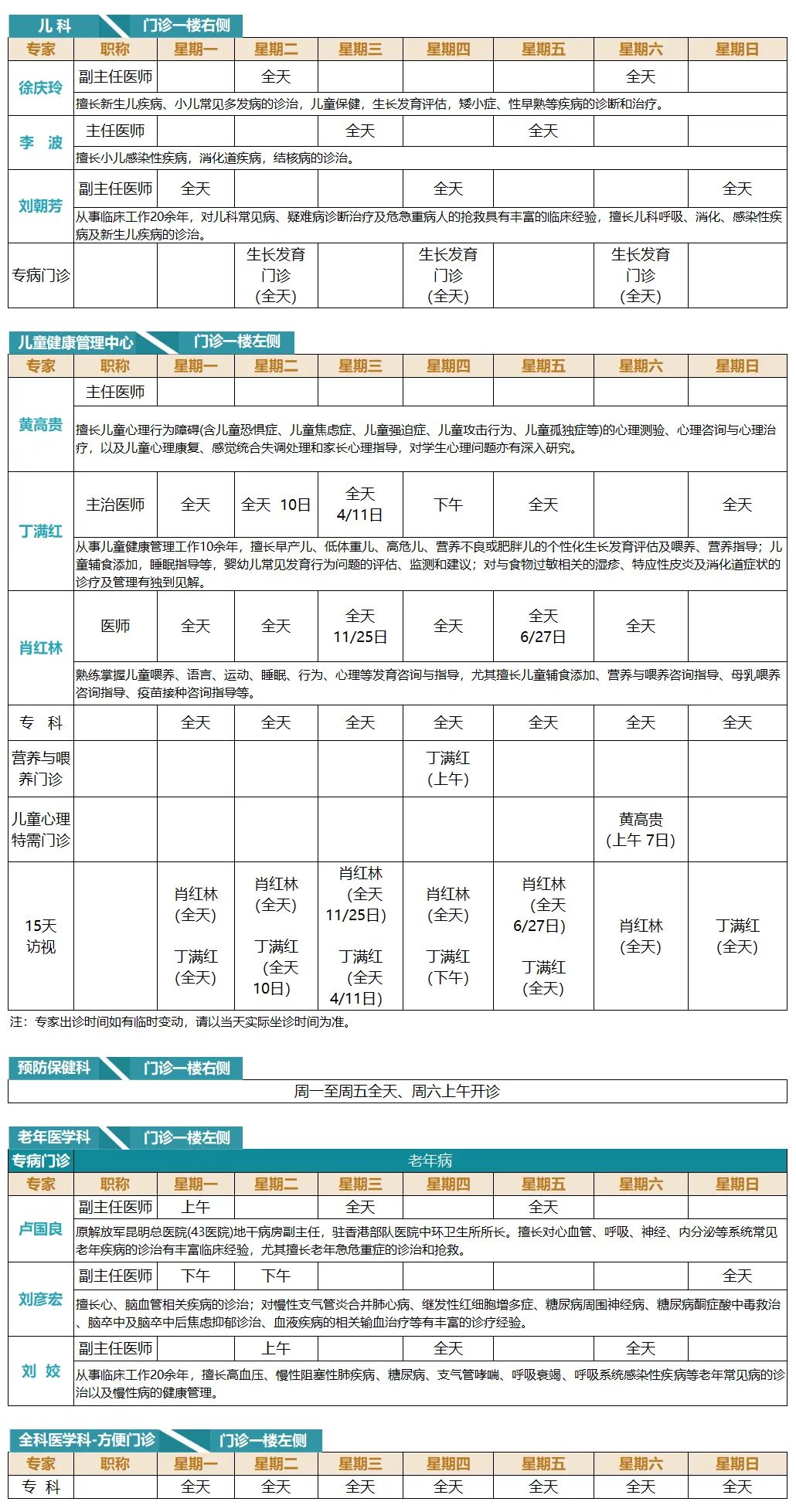 注:出诊专家如有临时变动以当天实际坐诊为准。